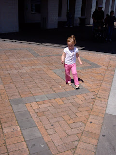 Walking back to the hotel - she LOVES following a line, even if it zigzags!