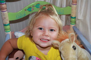 Our big girl wearing her very favorite outfit with her favorite "Neigh" (aka horse) that she sleeps with every night