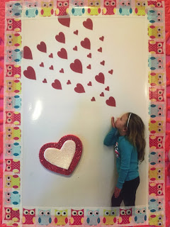 Both girls had their Valentine's parties at school this week. Olivia had her party on Thursday and we brought heart-shaped donuts for her class party. Earlier in the week Olivia brought a pink papered covered cereal box which her class then decorated as an owl in class. On Thursday, they passed out their valentine's to each other. Each had "To my friend" and Olivia signed them for her 11 classmates. Parents weren't invited to the party, but their class gave us each an adorable little Valentine's photo. Olivia had a great day and party.
