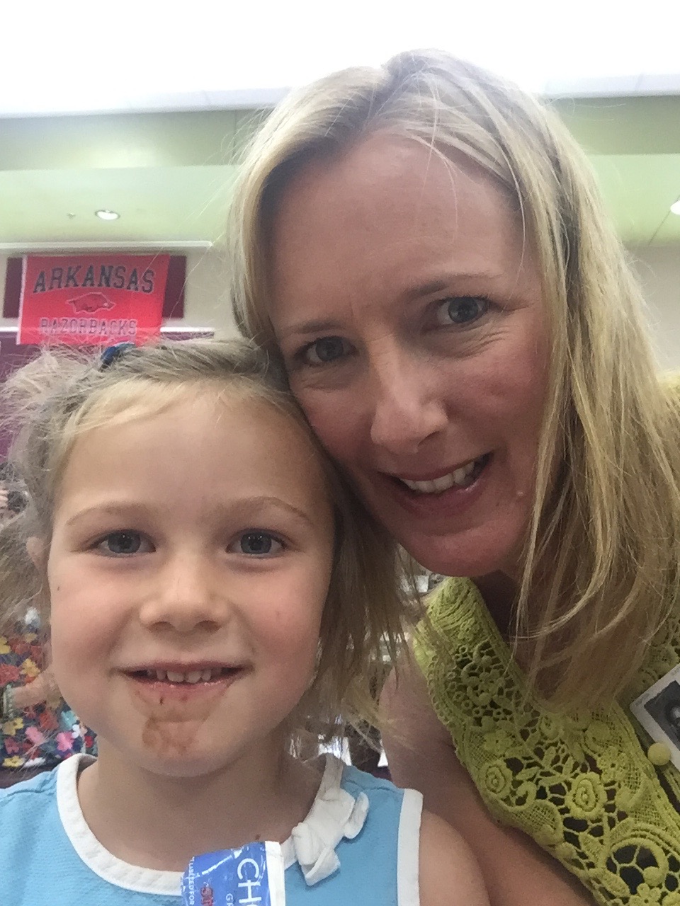 This morning Olivia and the rest of the CES Kindergarteners performed in a sweet Mother's Day program and then sat with each of their moms to share a delicious meal together. The cafeteria tables were set with a handmade place mat and hand print plate made by each of the kids. I found Olivia's which was really sweet. The place mat included a hand drawn "portrait" of me by Olivia in the center. I found a good seat at the table nearest the grandstand where the kids would be performing and reserved a seat for Stacy, who was picking up the food for our meal.