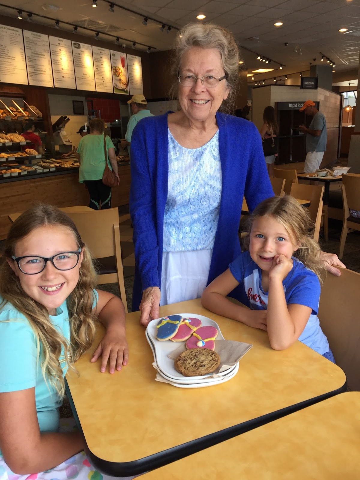 On Monday, our last full day in Florida, we spent the day with Grandma. After breakfast, the four of us went to see the 10:30am showing of Cloudy with a Chance of Meatballs, which Sofia has seen before but was new for the rest of us. The movie was super cute, although pretty odd. The girls loved it and we all enjoyed our popcorn and to sit in the cool of the movie theater! After the movie, we went to lunch at Panera which is actually one of my favorites! They have a great Greek salad and vegetable soup. We all enjoyed our lunch and then all picked out something sweet after our lunch, and Connie and I had coffee. So yummy and just what we needed!