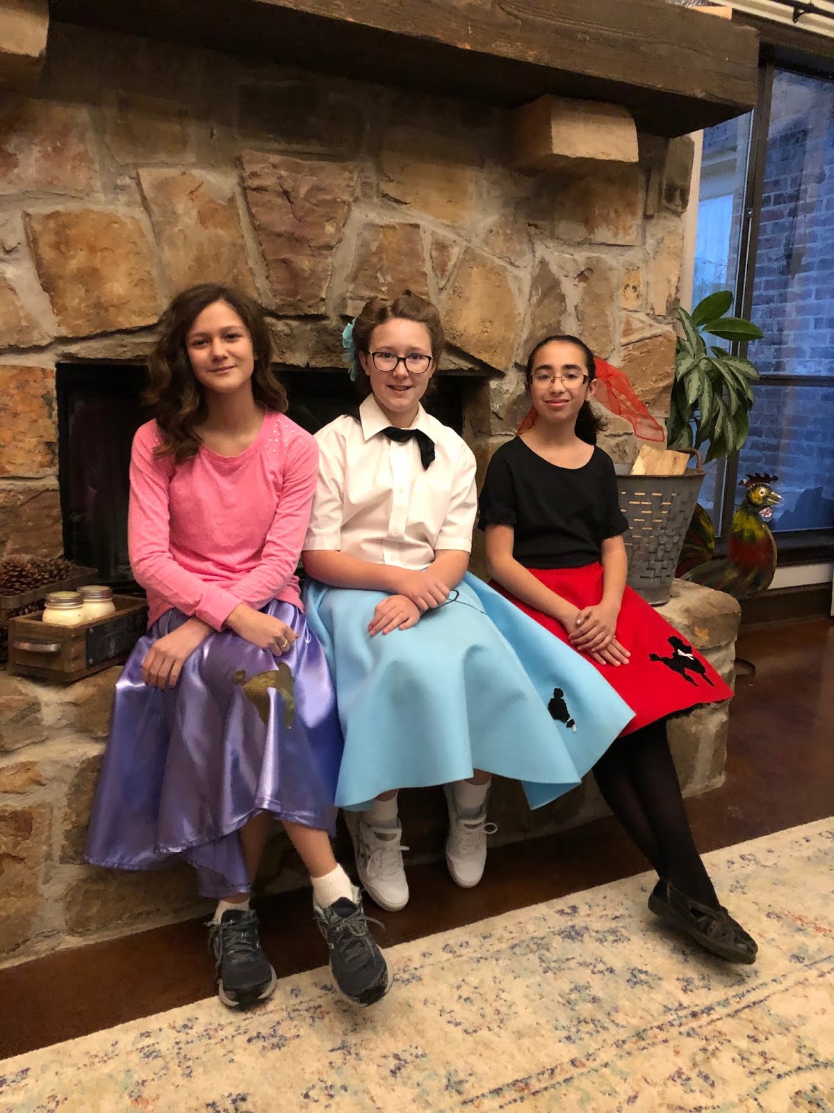 Thankfully, our friend Beth has a really cute 50s paddle skirt and outfit that we were able to borrow. I was really hesitant to buy a skirt or outfit because I doubt Sofia will ever use it again, so it was great to be able to borrow such a cute outfit! Sofia was so excited to wear it that she actually came downstairs in her 50s outfit Friday morning wanting to wear it to school all day. I pretty much knew how that would work out in middle school, so I told her that I was worried she would get it dirty and she would need to wait until that night's Cotillion. Her best friend, Carmel, isn't going to Cotillion and she really wanted her to see the outfit! I convinced her to change into her regular skirt and t-shirt even though it was a high of 37, and headed off to school.